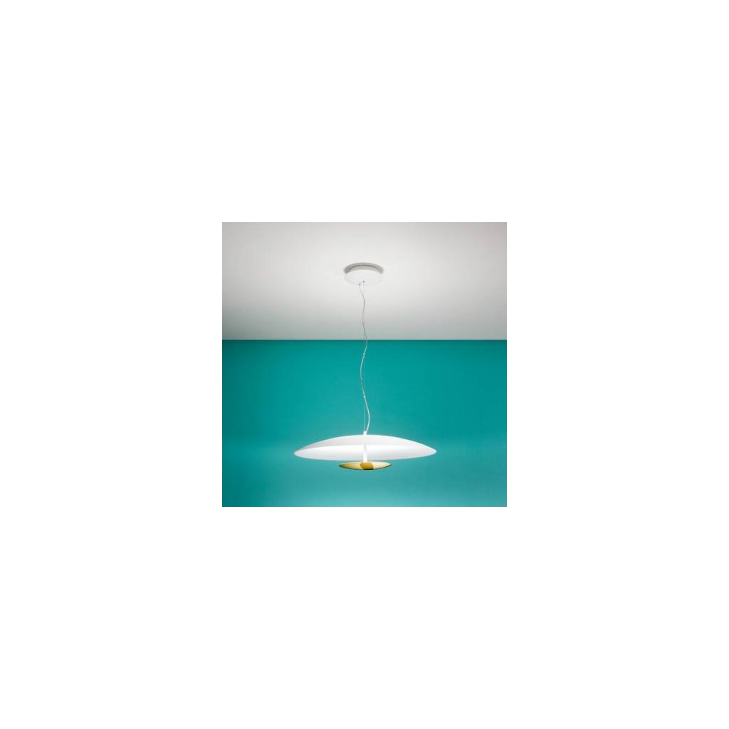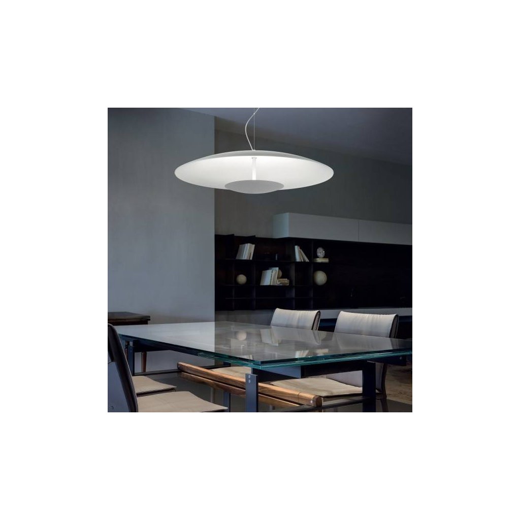 Atraktivní závěsné svítidlo vyrobeno z pískovaného skla, které vytváří nepřímé osvětlení. Světlo svítí nahoru, poté se odrazí a následně rozptýlí do interiéru. Je osazeno velmi kvalitními LED zdroji vyzařující teplé a neoslňující světlo, které navodí příjemnou atmosféru ať už ve Vašem obývacím pokoji nebo kuchyni. Výhodou je možnost výběru ze tří barev mističek (bílá, zlatá a chrom). Pořiďte si tak společníka, který Vás po náročném dni uvítá jemným svitem a originálním vzhledem.