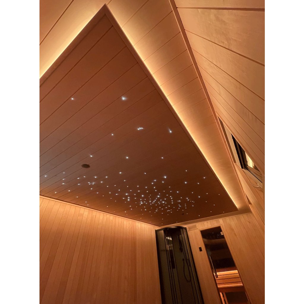 Set komponent se 108 světelnými body, který je určený k vytvoření světelného dekoračního efektu hvězdného nebe ve finské sauně, kabině i dalších welness a relax prostorech. Pomocí tohoto setu a umístěním optických vláken přímo do povrchu materiálu můžete vytvořit skvostný efekt hvězdného nebe na stropě, stěnách nebo v podlaze, ale například i v lavici a podobně. Set nabízíme ve variantě se statickým, mihotavým nebo RGB efektem.