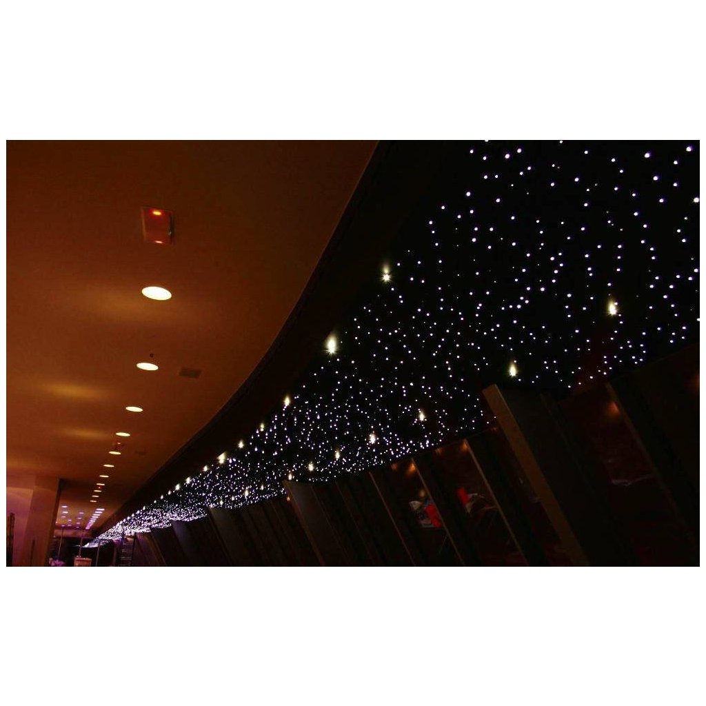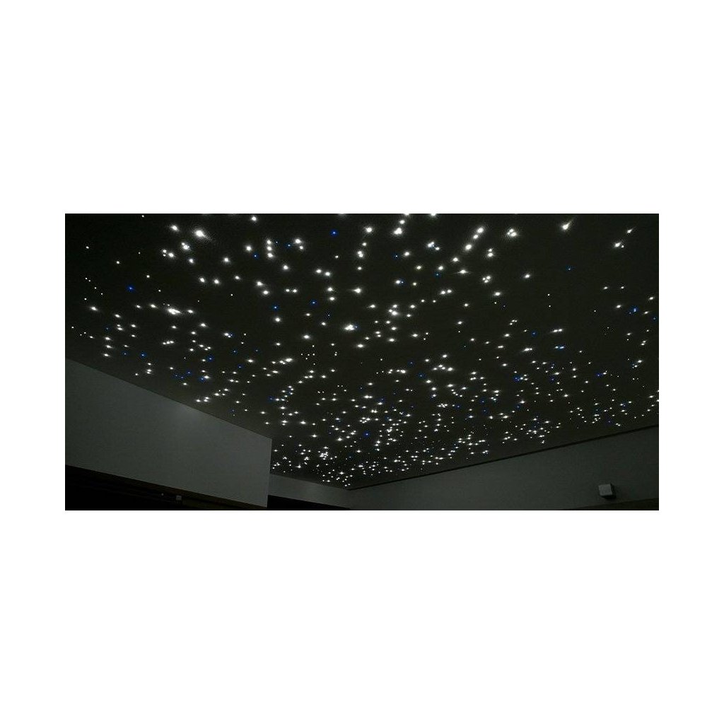 Hvězdné nebe přináší do Vašeho interiéru působivý světelně-dekorativní efekt. Sestava funguje na principu optických vláken. Tato sada nabízí 700 světelných bodů a obsáhne plochu cca 4 x 2,5 m. Vhodné do obývacího pokoje, ložnice, vstupní haly, hotelové recepce a wellness. Jedná se o mix tří různých průměrů vláken (400*0,5, 200*0,75 a 100*1,5 mm) o délce 5 m, který dodá hvězdnému nebi přirozený a věrohodný vzhled. Zároveň umožňuje vytvářet konkrétní obrazce, souhvězdí a animační efekty. Svazek optických vláken je třeba dopojit na iluminátor a napaječ, které jsou součástí této sady. Volit můžete mezi statickým efektem (pouze ON/OFF) nebo mihotavým efektem, kdy je potřebný korpus, na kterém si při instalaci nastavíte Vám příjemnou rychlost mihotání. Instalaci hvězdných nebí zajišťujeme našimi externími techniky a rádi Vám ji naceníme po upřesnění vaší stavební připravenosti.