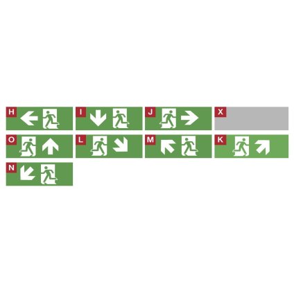 Vyznačení únikové trasy LED nouzovými svítidly s piktogramem určují směr, kudy co nejkratší únikovou cestou opustit postižený prostor až k nouzovému východu. Svítidla s piktogramem mají být instalované při všech východech určených pro nouzové opuštění prostoru, na schodištích, při každém směru únikové cesty, na křižovatkách chodeb, v blízkosti každého požárního hlásiče, hydrantu nebo hasícího přístroje. Vertikální osvětlenost v těchto prostorách je min. 5lx.