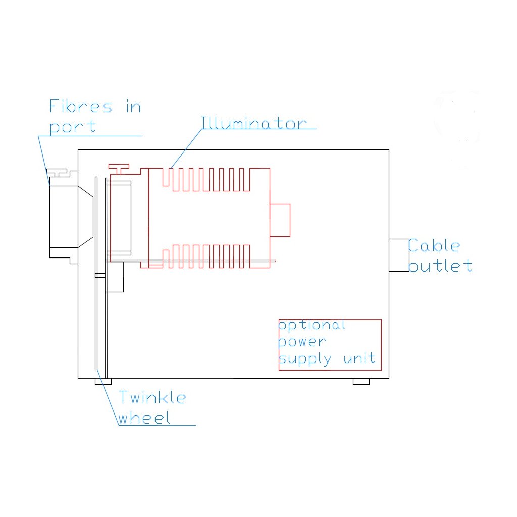 Efekt je poháněn mihotavým filtrem asymetrického designu a otáčen mikroprocesorovou technikou. Mikroprocesorová elektronika uvnitř je napájena z energie samotného iluminátoru, tedy 12-24VDC. Pro hvězdné nebe a jiné méně výkonné aplikace používejte iluminátory MEDIUM s optikou typu „OPTIC“ přičemž intenzita klesne na cca 25% avšak záběr světla bude po celé ploše portu. Tento typ korpusu je v případě potřeby možné osadit i iluminátorem typu HIGH, což bude kombinace vhodná pro vysokovýkonné instalace ať už bílé nebo RGB/RGBW.