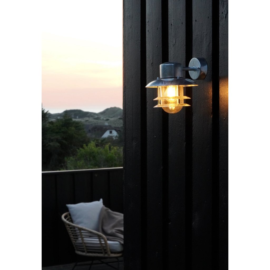 Kvalitní nástěnné svítidlo NORDLUX Blokhus 25051031 pro osvětlení teras a okolí domu je tvořené kulatou základnou a pěknou lampovou hlavou s robustním středovým sklem. Tělo svítidla je z galvanizované oceli. Výrobce si je jist jeho kvalitou, proto dává na svítidlo záruku 15 let. Na zajímavosti tomuto svítidlu přidá, pokud ho doplníte o vyměnitelnou LED žárovku Filament pro větší efekt nebo i klasickou LED s objímkou E27. Vybrat můžete také stmívatelnou žárovku.