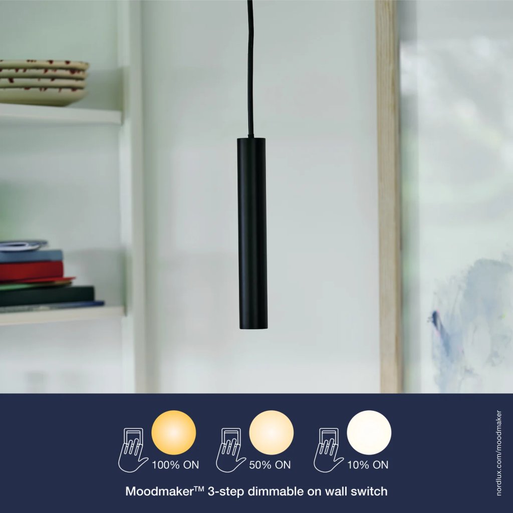 Zajímavě provedený subtilní LED lustr NORDLUX Omari, který nabízíme ve dvou nadčasových barvách bílé 2112213001 a černé 2112213003. Hladký válec s průměrem 3 cm, který je zavěšen na 200 cm dlouhém zkrátitelném závěsu skvěle vypadá ve větší skupině stejných svítidel. Samozřejmostí je i stropní rozeta v barvě svítidla. Integrovaný LED zdroj vydává příjemné teplé světlo a vzhledem k vysoké kvalitě zdroje dává výrobce Nordlux prodlouženou 5-ti letou záruku. Výhodou je možnost 3-stupňového stmívání Nordlux Moodmaker Vaším standardním nástěnným vypínačem (100%, 50% a 10%), hodí se tak skvěle do kuchyně i pro osvětlení obývacího pokoje. Jednoduše přes svůj vypínač v okamžiku navodíte jinou atmosféru. Pro jednotný styl můžete sladit i s dalšími svítidly série Omari Nordlux.