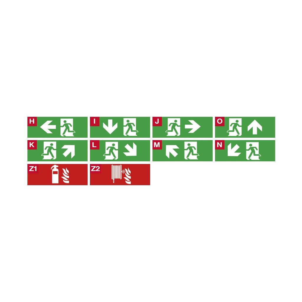 - samolepící piktogramy s rozeznatelní na vzdálenost 35 m a jasem >500cd/m2 (bílá) (verze H,I,J,O jsou standardně přibalené ke svítidlu)