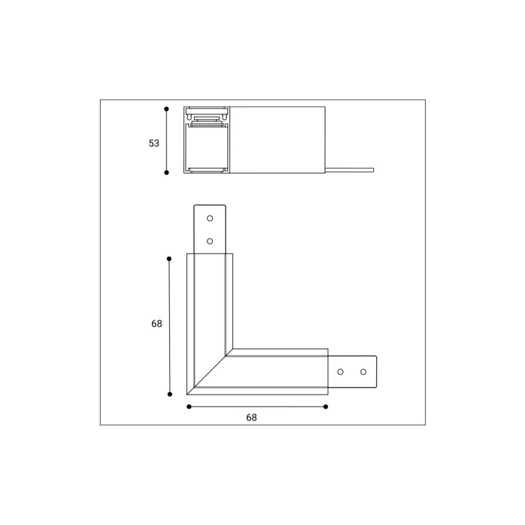 Rohová horizontální spojka k liště pro LED2 povrchový magnetický 48 V systém MAG II TRACK. Spojka je vyrobená z hliníku v bílém nebo černém provedení.