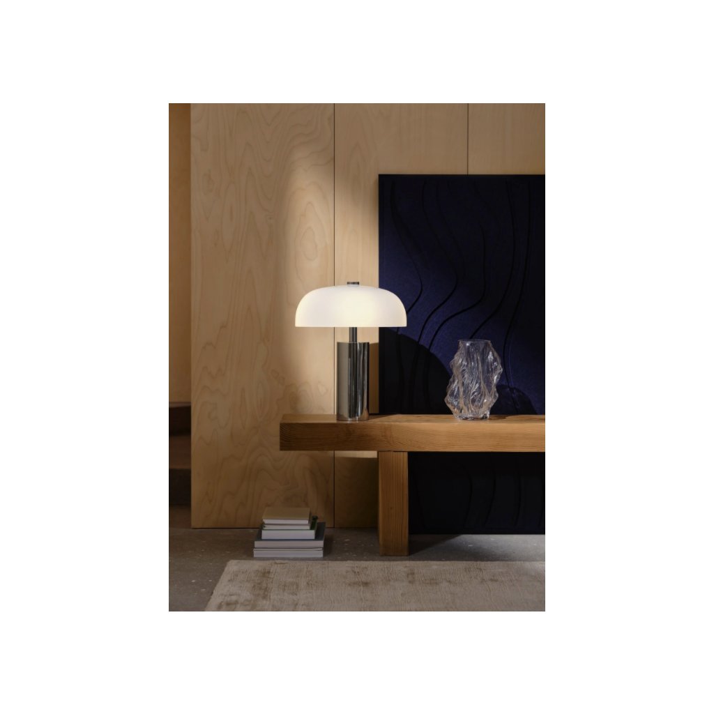 Elegantní stolní lampa NORDLUX Gabrielle 2612435033 vyniká kombinací lesklého chromu a opálového skla. Výrazné stínidlo z opálového skla svítí měkkým, rozptýleným světlem, proto neoslňuje. Díky čtyřem 10W žárovkám svítidlo poskytuje dostatek světla. Lampička se skvěle vyjímá na čtecím stolku v obývacím pokoji nebo v ložnici.