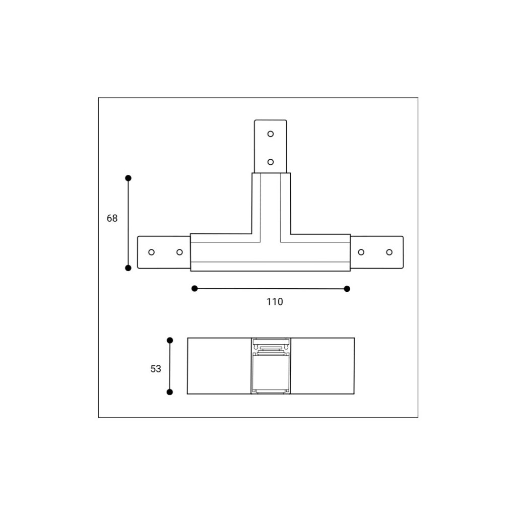 T-spojka k liště pro LED2 povrchový magnetický 48 V systém MAG II TRACK. Spojka je vyrobená z hliníku v bílém nebo černém provedení.