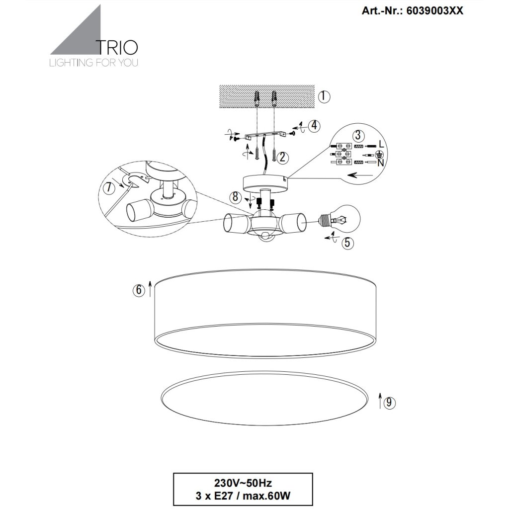 Textilní stropní žárovkové světlo TRIO HOTEL