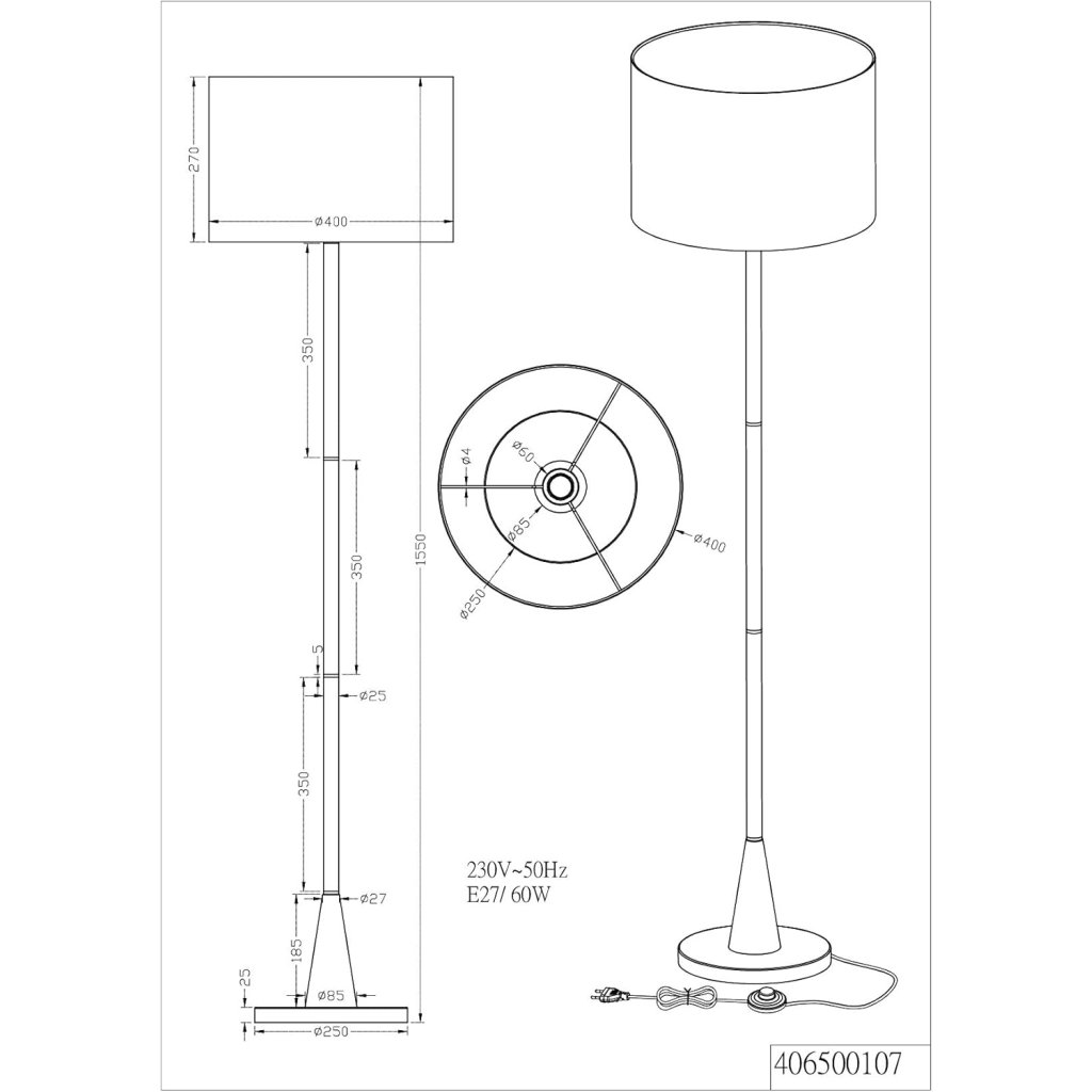 Kvalitní stojící lampa s textilním stínidlem v jemném moderním designu. Elegantní, pevnou a stabilní konstrukci tvoří kovová základna a noha s povrchovou úpravou v matném niklu. Šedé textilní stínidlo zajišťuje příjemné rozložení světla a vytváří útulnou atmosféru. Stínidlo má průměr 400 mm a výšku 270 mm. Lampa je vybavená závitem E27 pro LED žárovku a můžete si tedy zvolit výkon i barevnou teplotu světla přesně tak, jak vám bude vyhovovat. Vypínač je umístěný na přívodním kabelu a lze jej pohodlně spínat nohou.