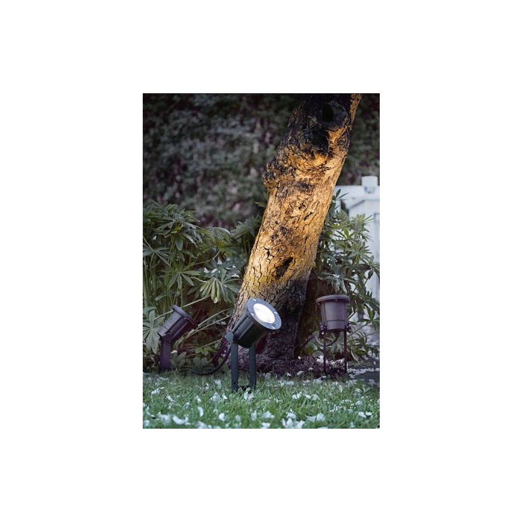 Zahradní zemní svítidlo Nordlux Spotlight GU10 20789903 s bodcem. Součástí je napichovací kolík a přívodní kabel černé barvy. Ideální na osvětlení zahradních detailů, např. skalky nebo stromů.