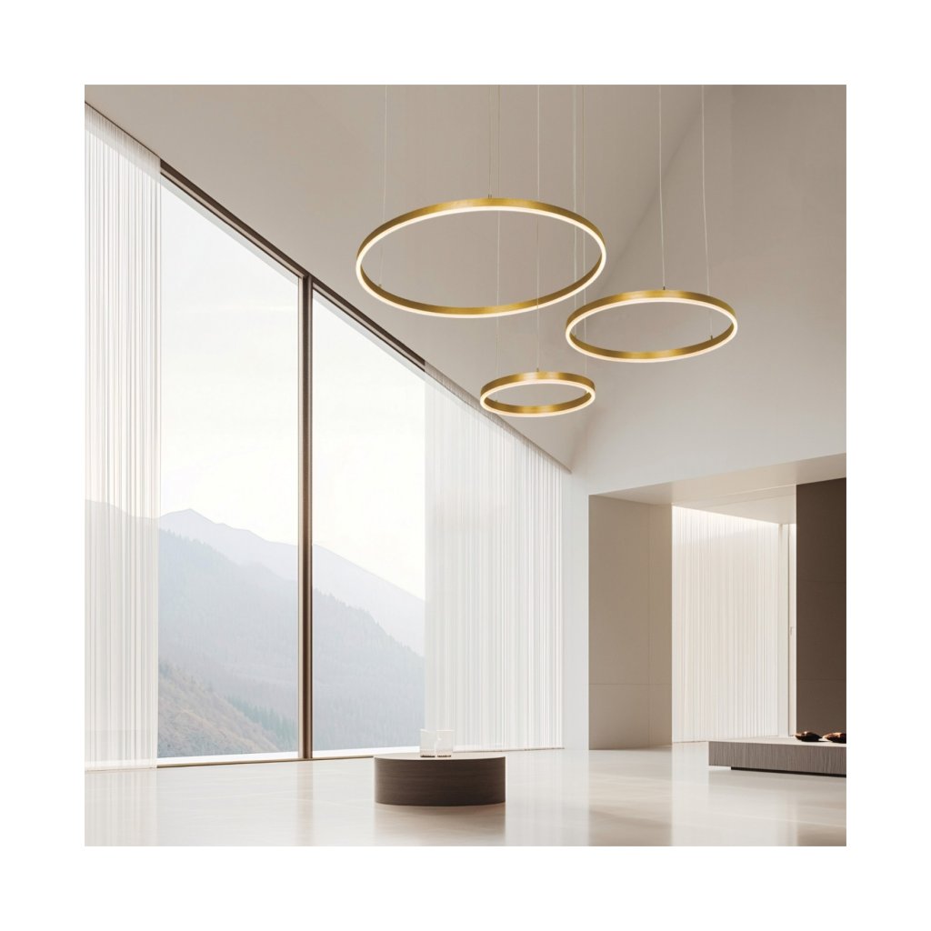 Dodejte svému interiéru nádech luxusu a originality. Závěsné svítidlo Zambelis 1956 se svým elegantním kruhovým tvarem a zlatým provedením promění každý prostor v místo, které dýchá stylem a harmonií.